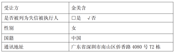 根据公司公告中披露的受让人金美含的通讯地址信息,核对天眼查信息可以发现,深圳一颗星空间科技有限公司法定代表人与上述受让人重名,也为金美含。