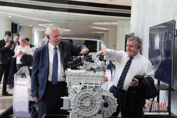 4月10日,中国—中东欧国家合作国家协调员代表团在重庆走访中国长安汽车集团,了解汽车混动专用发动机。梁钦卿 摄