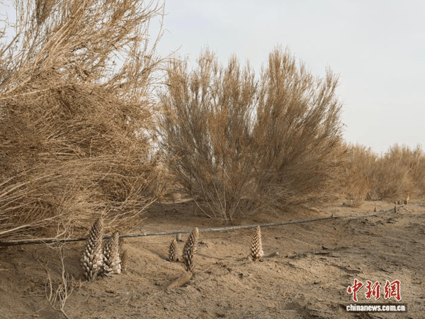 在防沙治沙示范区内,梭梭和肉苁蓉共同生长。张家伟 摄