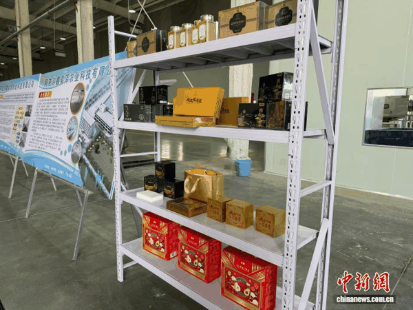 当地企业生产车间内摆放的一系列肉苁蓉加工产品。张家伟 摄