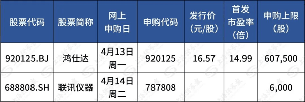 据目前安排,若无变化,下周(4月13日至17日)有2只新股可申购,分别为科创板1只和北交所1只。