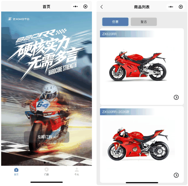 3 月 21 日,张雪机车新产品 ZX 820RR 和 ZX 500RR 在微信小程序开启独家发售。为了保证用户的安全、防止盲目追新,张雪在小程序上主动做了“限售”—— 下单后,小程序会有“必须满足驾龄 1 年以上”弹窗 。