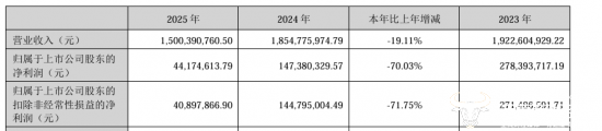 欢乐家披露的2025年年度报告显示,公司2025年全年实现营业收入15.00亿元,同比下降19.11%,而归母净利润由上年同期的1.47亿元减少至4417.46万元,大幅下降了70.03%。