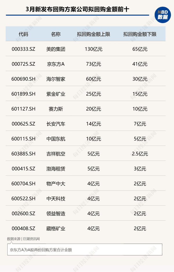 3月回购再掀热潮:51家公司拟最高斥资400亿元回购,环比增超750%!26家公司已启动,紫金矿业首月大手笔回购近17亿元!