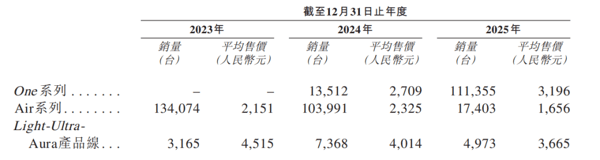 招股书显示,XREAL产品线可归纳为三大主要系列:Air系列、One系列,以及Light-Ultra-Aura产品线。根据艾瑞咨询的资料,按销售收入计,XREAL从2022年至2025年间每年在全球AR眼镜市场中位居第一。