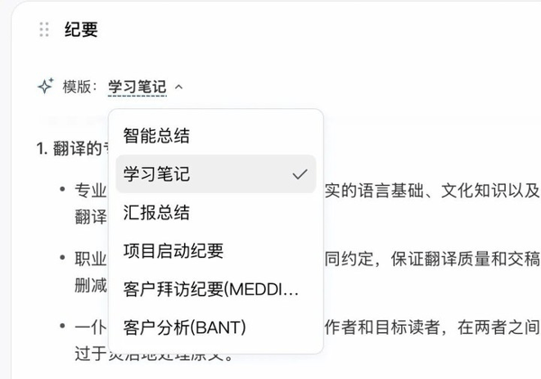 我在屏幕前坐了三秒,头开始疼,算了,直接看「学霸助手」模板整理的纪要。