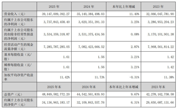 财务数据显示,2025年公司实现营业收入391.47亿元,同比增长11.40%;实现归属于上市公司股东净利润37.38亿元,同比增长3.25%,在多重挑战下保持了稳健的盈利水平。报告期内,原材料价格持续上涨叠加汇率波动加剧,对成本控制及利润成长形成压力;同时,公司为抢抓AI服务器市场机遇,持续加大资本开支,短期内折旧费用的增加也对盈利成长带来一定压力。对此,公司积极维护供应链稳定,深入推进降本增效,把握市场趋势,积极开拓新客户、新产品,有效化解了各类挑战。