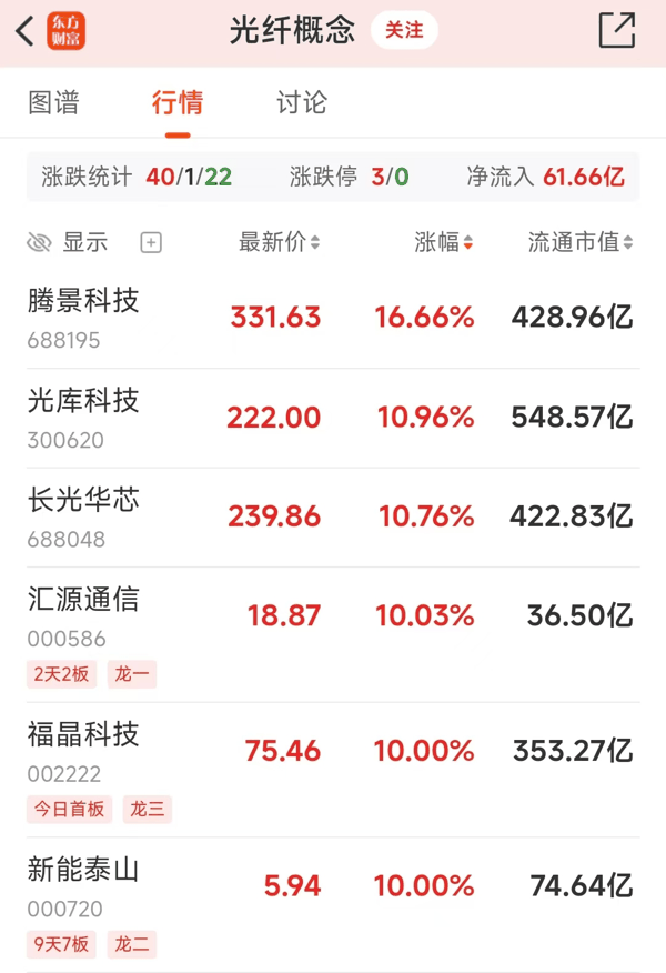 价格同比涨超400%!光纤概念集体强势 两龙头年内已翻倍