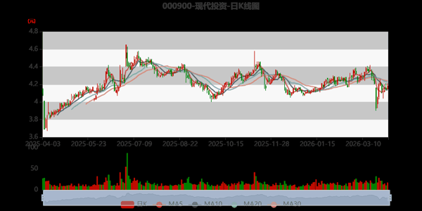 中证智能财讯 现代投资 (000900)4月3日披露2025年年度报告。2025年,公司实现营业总收入64.8亿元,同比增长5.46%;归母净利润4.05亿元,同比增长18.70%;扣非净利润5.12亿元,同比增长57.42%;经营活动产生的现金流量净额为30.12亿元,同比增长35.79%;报告期内, 现代投资 基本每股收益为0.2395元,加权平均净资产收益率为3.31%。公司2025年度分配预案为:拟向全体股东每10股派现1.6元(含税)。