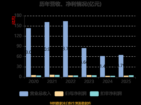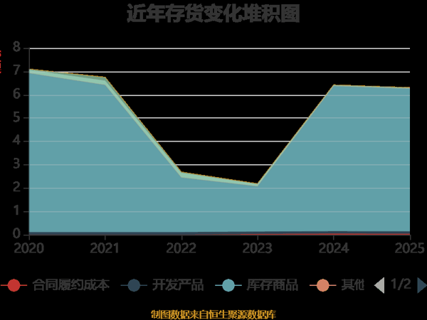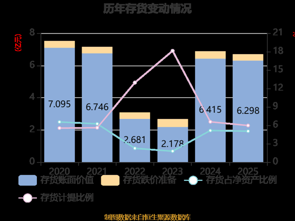 从存货变动来看,截至2025年末,公司存货账面价值为6.3亿元,占净资产的5.03%,较上年末减少1169.22万元。其中,存货跌价准备为3993.3万元,计提比例为5.96%。