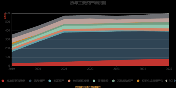 资产重大变化方面,截至2025年末,公司无形资产较上年末减少3.03%,占公司总资产比重下降3.03个百分点;一年内到期的非流动资产较上年末增加99.38%,占公司总资产比重上升1.04个百分点;发放贷款和垫款较上年末增加9.13%,占公司总资产比重上升0.82个百分点;货币资金较上年末增加15.16%,占公司总资产比重上升0.79个百分点。