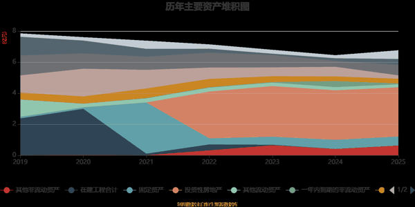 资产重大变化方面,截至2025年末,公司交易性金融资产合计较上年末减少64.72%,占公司总资产比重下降6.4个百分点;一年内到期的非流动资产较上年末减少84.22%,占公司总资产比重下降5.12个百分点;应收票据及应收账款较上年末增加77.23%,占公司总资产比重上升4.12个百分点;货币资金较上年末增加126.42%,占公司总资产比重上升3个百分点。