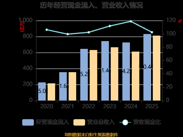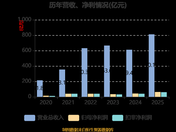 中证智能财讯 华友钴业 (603799)4月8日披露2025年年度报告。2025年,公司实现营业总收入810.19亿元,同比增长32.94%;归母净利润61.1亿元,同比增长47.07%;扣非净利润57.93亿元,同比增长52.64%;经营活动产生的现金流量净额为40.12亿元,同比下降67.73%;报告期内, 华友钴业 基本每股收益为3.34元,加权平均净资产收益率为13.70%。公司2025年度分配预案为:拟向全体股东每10股派现5元(含税)。