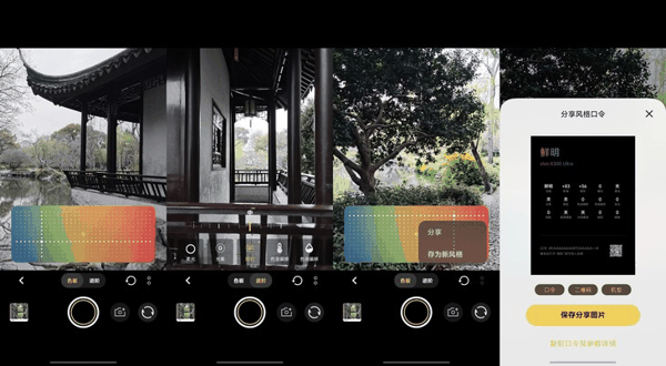 它还带来了更高阶的玩法“蓝图调色盘”,在不同的风格下,还可以自定义调节色彩风格、颗粒感、光晕。冷暖调等多种选项,自由度非常高,而且可以保存和分享方案,以共创的形式,进一步提升了手机影像的可玩性和专业性。