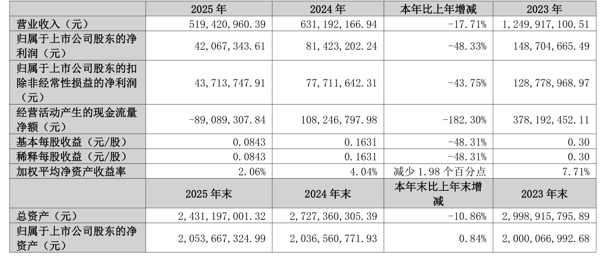 数据显示,2025年公司加权平均净资产收益率为2.06%,较上年同期下降1.98个百分点。公司2025年投入资本回报率为1.91%,较上年同期下降1.71个百分点。