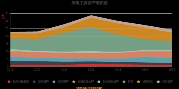 资产重大变化方面,截至2025年末,公司货币资金较上年末减少25.78%,占公司总资产比重下降4.92个百分点;投资性 房地产 较上年末增加10.5%,占公司总资产比重上升3.67个百分点;在建工程合计较上年末增加3165.36%,占公司总资产比重上升2.39个百分点;存货较上年末减少16.3%,占公司总资产比重下降1.45个百分点。