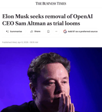 2026-04-08 [奥特曼] 马斯克在对OpenAI的诉讼中寻求罢免奥特曼职位
