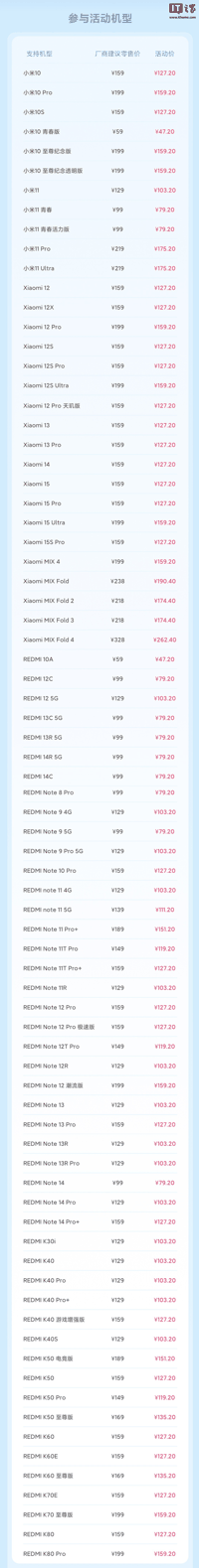 2026-04-01 [小米] 小米2026年4月超级服务周开启,REDMI 14 C等77款手机可8折换电池