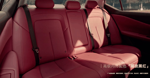 新车外观采用了黑金双拼配色,灵感取自黑曜岩与金色矿脉,配合新的腰线工艺,增加了车身的视觉层次感;座舱内部则采用了以「日落霞光」为理念的黑红内饰,进一步丰富了车内的视觉氛围。