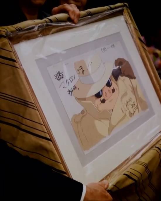 视频中,他摆出经典的“龟派气功”姿势,还收到了宫崎骏签名的《红猪》插画,并与游戏制作人小岛秀夫握手,引发网友关注。