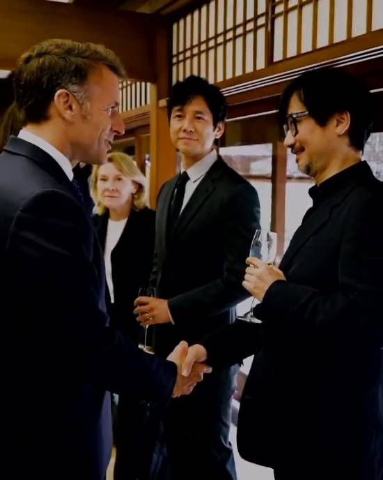 法国总统马克龙与小岛秀夫握手合影!还玩起龟派气功