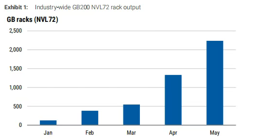 而根据 TrendForce 咨询公司今年 7 月的预估,2025 全年,Blackwell 系列的出货比例,将达到 NVIDIA 高阶 GPU 总产量 80% 以上,产能大大提升。