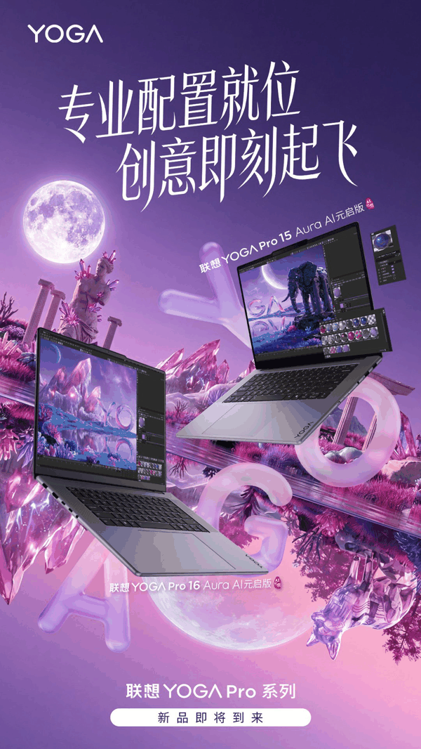 IT之家 2 月 25 日消息,联想官方今日宣布,YOGA Pro 系列新品即将上市,主要包含 2026 款 YOGA Pro 15/16 Aura Al 元启版,预计最快明天开启预售。