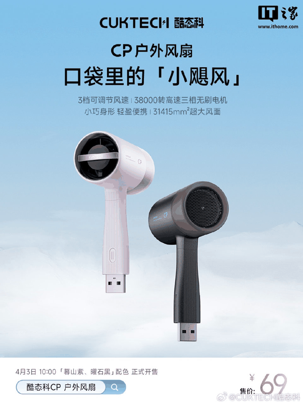 IT之家 4 月 3 日消息,酷态科现已为其 CP 户外风扇新增「暮山紫」「曜石黑」两款配色,目前相应产品已在京东开售, 定价为 69 元 。