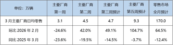 对于3月车市的表现,乘联分会此前发文表示,受春节时间较晚影响,3月上半月仍处于节后消费修复期,市场热度恢复相对缓慢。随着以旧换新补贴细则全面落地、正月结束后消费场景逐步回归,以及春季车展前新车密集上市,3月中下旬汽车市场有望开启季节性回暖。