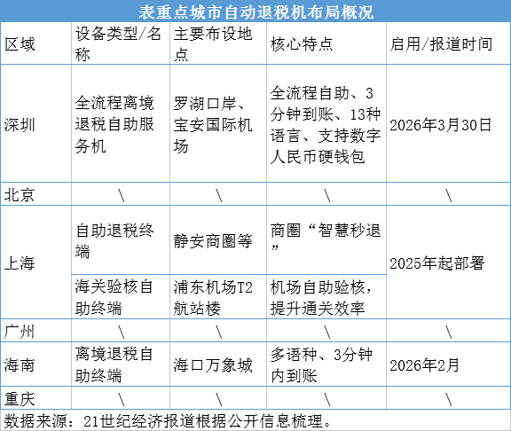 记者发现,启用自助服务终端正在成为解决该入境消费痛点的新方式。结合最新数据来看,上述入境消费重点城市区域中,深圳、上海、海南走在全国前列,已经率先布局启用。