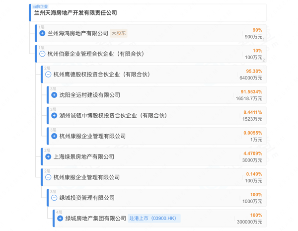 2019年,海鸿地产成立“兰州市海鸿喜悦府” 项目公司兰州天海房地产开发有限责任公司,其中沈阳全运村和绿城投管参投。海鸿地产从沈阳全运村方面的借款年化利率约15%。2026年2月,项目公司成为被执行人。