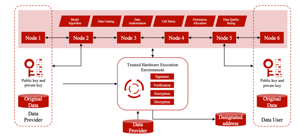在计算分析阶段,网络集成多方安全计算(MPC)与联邦学习技术。多方安全计算支持参与方在不共享原始数据的前提下完成联合计算,例如供应链金融中的应收账款确权场景,各节点通过协议分摊计算任务,仅输出加密的最终结果;联邦学习则允许跨机构模型训练,如多家医院在本地保留原始数据的前提下,通过加密参数交换构建疾病预测模型,模型结果经智能合约验证后,以同态加密形式返回使用方,全程符合数据最小化原则。