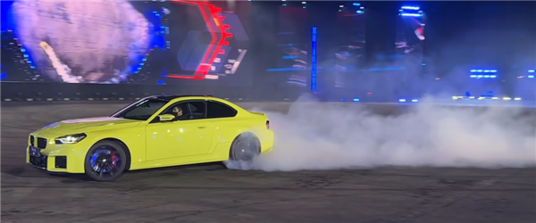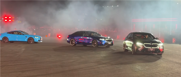 宝马 M 性能部门下的几乎所有车型排着队在场地里漂移,M2 漂完 M3 漂,M3 漂完 M4 漂。