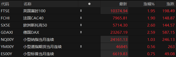 周三盘前,美股三大股指 期货 齐涨,欧洲主要指数普遍上涨。截至发稿, 纳斯达克 100指数 期货 涨1.03%,道指 期货 涨0.56%,标普500指数期货涨0.75%。个股方面,明星科技股盘前走高, 特斯拉 涨超2%,Meta Platforms、 英伟达 、 微软 、 谷歌-A 、美国超微公司、 亚马逊 涨超1%。