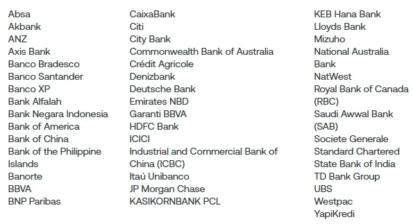 (已表明支持Swift 新零售 支付框架的银行总体名单,各家银行的具体采用时间表可能有所不同图源:Swift)