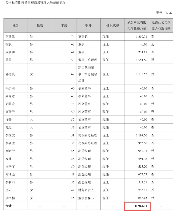 高管薪酬1.2亿、4人超千万