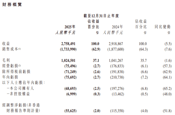 截至2025年12月31日止年度,公司的经调整净亏损(非香港财务报告准则计量)约为人民币5560万元,较截至2024年12月31日止年度的约人民币1.154亿元减少约人民币5970万元或51.8%,主要由于公司扩大高利润点位的发展策略、部分由点位合伙人营运的点位转为直营模式营运以及降本增效,导致年内亏损减少。