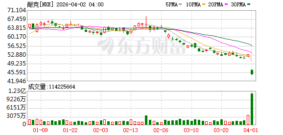 4月1日,全球知名体育运动品牌 耐克 公布2026财年第三财季财报。数据显示, 耐克 第三季度营收113亿美元,在报告基础上与去年同期持平,超华尔街预期。其中, 耐克 自营业务营收为45亿美元,经销商业务营收为65亿美元,在报告基础上增长5%。