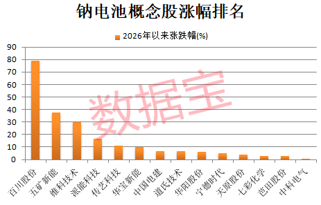 据证券时报·数据宝统计,二级市场表现方面,截至4月3日收盘,今年以来钠电池概念股平均下跌1.03%。其中6股逆势上涨超过10%,分别为 百川股份 、 五矿新能 、 维科技术 、 派能科技 、 传艺科技 、 华宝新能 。