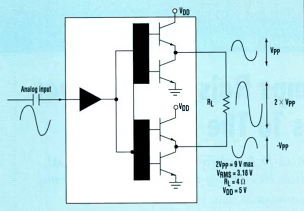 近年来,半导体制造工艺的突破才真正实现了集成式 D 类音频放大器的量产。如今,开关速度快、稳定性强的 DMOS 功率场效应晶体管(MOSFET)可与模拟电路集成在同一芯片上,不再需要分立的输出功率级电路。由此制成的 D 类音频功率放大器,能以极高的效率满足音乐带宽内紧凑型电池供电音频设备的应用需求。