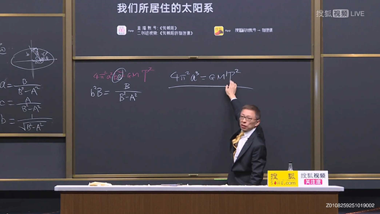 黑板上,张朝阳在开普勒第三定律的表达式下方重重画了一条线。“轨道半长轴的立方正比于公转周期的平方。”这一总结简洁却深刻,勾勒出整个太阳系严整的大格局,道出八大行星的运动秩序所在。