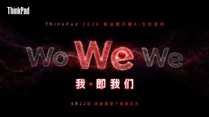 PChome4月7日消息,联想将于2026年4月22日举办ThinkPad 2026新品暨天禧AI生态发布会,以“我·即我们”为主题,聚焦超级个体与AI生态的融合创新。