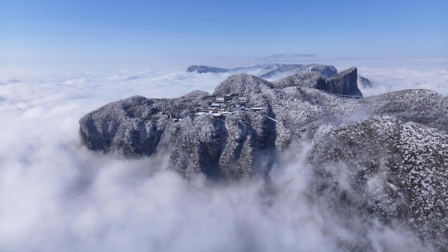 陕西西安:雾凇云海扮靓秦岭