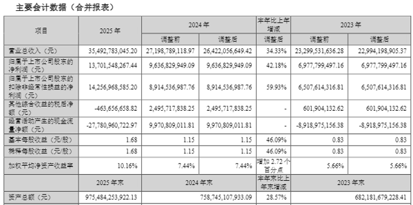 3月30日晚间, 广发证券 发布的《2025年年度报告》显示,报告期内,公司营业总收入为354.93亿元,同比增长了34.33%;归属于上市公司股东的净利润(下称“净利润”)为137.02亿元,同比增长42.18%。扣非净利润为142.57亿元,同比增长了59.93%。