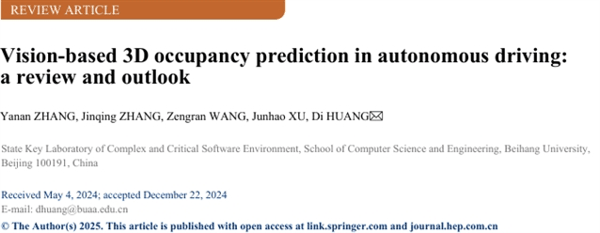 Yanan ZHANG, Jinqing ZHANG, Zengran WANG, Junhao XU, Di HUANG. Vision-based 3D occupancy prediction in autonomous driving: a review and outlook. Front. Comput. Sci., 2026, 20(1): 2001301 DOI:10.1007/s11704-024-40443-5