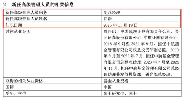 【导读】中航基金“百亿元级”基金经理韩浩升任公司副总