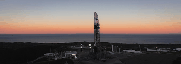 在范登堡太空部队基地东 4 号航天发射场(SLC-4E),一枚 SpaceX 猎鹰 9 号火箭已就位,准备执行 Transporter-15 任务。图源:SpaceX