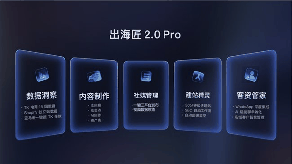 出海匠 2.0 Pro 的核心功能模块展现了强大的数智化实力。