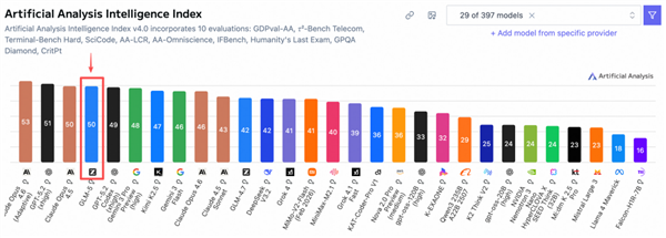 在全球权威的Artificial Analysis榜单中,GLM-5位居全球第四、开源第一。