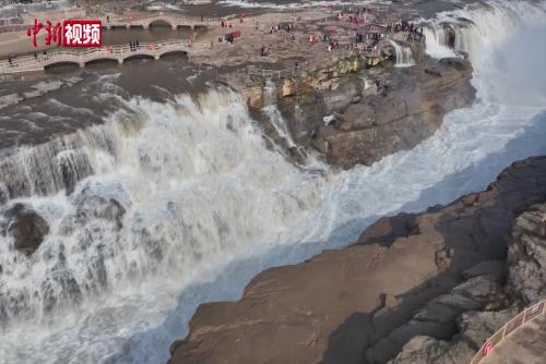 黄河壶口瀑布:“桃花汛”与彩虹同框
